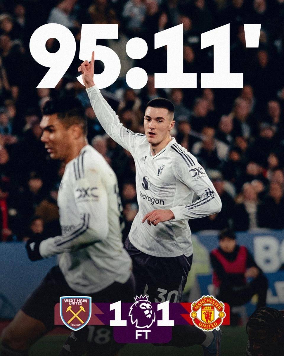 曼联4连胜后踫到保级队西汉姆联,竟然最后时刻才战平。
